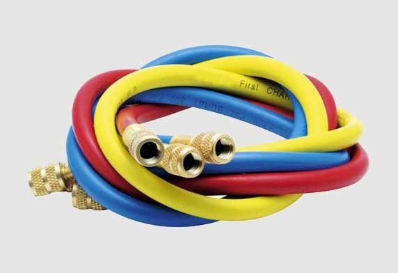 Refrigerant charging hose is used to auto refrigeration and air conditioner industries, available length for 36″, 60″ and 72″ in red, blue and yellow color, suitable for R12, R22, R134a, R410a and R502 refrigerant.